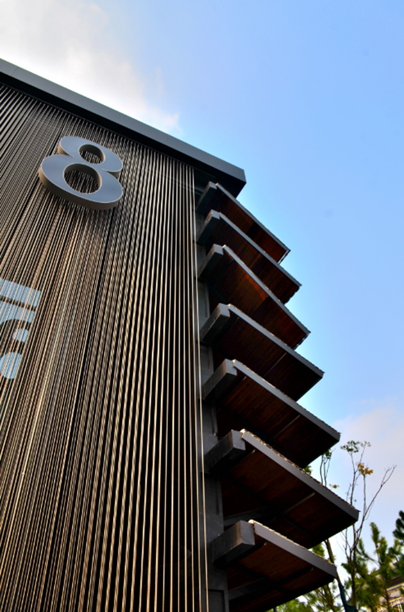 會址外立面上,采用260萬片江南小青瓦、5.1萬根鋼索以網(wǎng)狀肌理寓意互聯(lián)網(wǎng),30萬片桃花江戶外防腐竹材吊頂,整體呈現(xiàn)江南古老建筑與現(xiàn)代網(wǎng)絡(luò)相融共生的和美場景,也與整個烏鎮(zhèn)形成富有生機的時代對話。