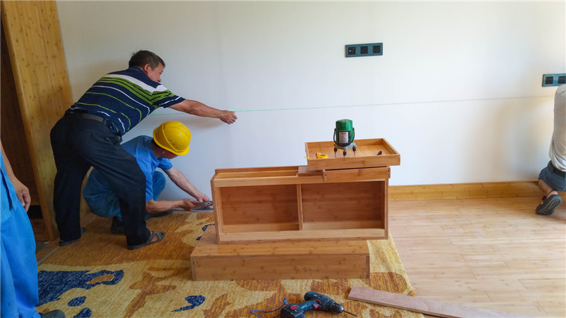 遠(yuǎn)大可建是遠(yuǎn)大科技集團(tuán)全資子公司,是全球持續(xù)建筑的先驅(qū),創(chuàng)造360小時(shí)建成30層精裝酒店的奇跡,目前在可持續(xù)酒店產(chǎn)品進(jìn)行深度研發(fā)。基于對(duì)竹材的喜愛和對(duì)竹材環(huán)保的高度認(rèn)可,遠(yuǎn)大總裁張躍親自參與此次與桃花江竹材科技在其塔式酒店產(chǎn)品竹整裝項(xiàng)目的洽談。在遠(yuǎn)大可建汨羅工廠,酒店竹整裝三套樣板間安裝施工已基本完成,內(nèi)部裝飾全部在桃花江竹材科技工廠加工后運(yùn)至在現(xiàn)場(chǎng)組裝,地面鋪設(shè)竹地板,整體效果簡(jiǎn)潔、自然、溫馨。遠(yuǎn)大總裁張躍視察樣板間后對(duì)竹材裝飾效果十分滿意,表示將加大對(duì)可建酒店竹整裝項(xiàng)目的研發(fā)與推廣,加強(qiáng)與桃花江竹材科技的深度合作,期望未來全世界每三幢新建建筑就有一幢是可建。