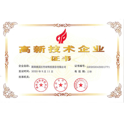 桃花江竹材連續(xù)12年都榮獲“高新技術(shù)企業(yè)”榮譽(yù)稱(chēng)號(hào)。