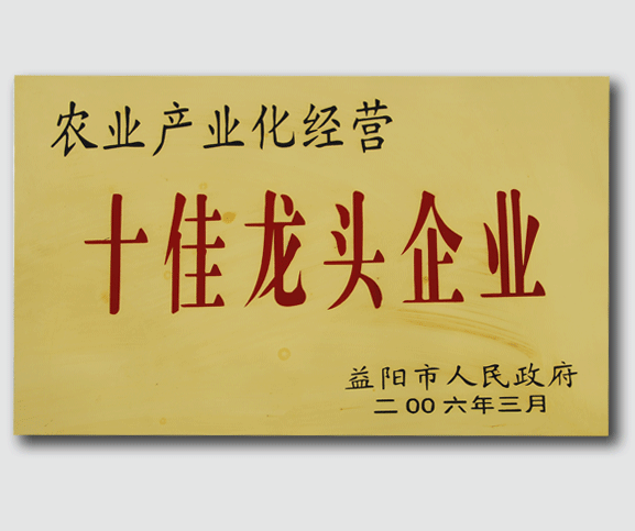 桃花江實(shí)業(yè)榮獲“農(nóng)業(yè)產(chǎn)業(yè)化經(jīng)營(yíng)-十佳龍頭企業(yè)”榮譽(yù)稱號(hào)。